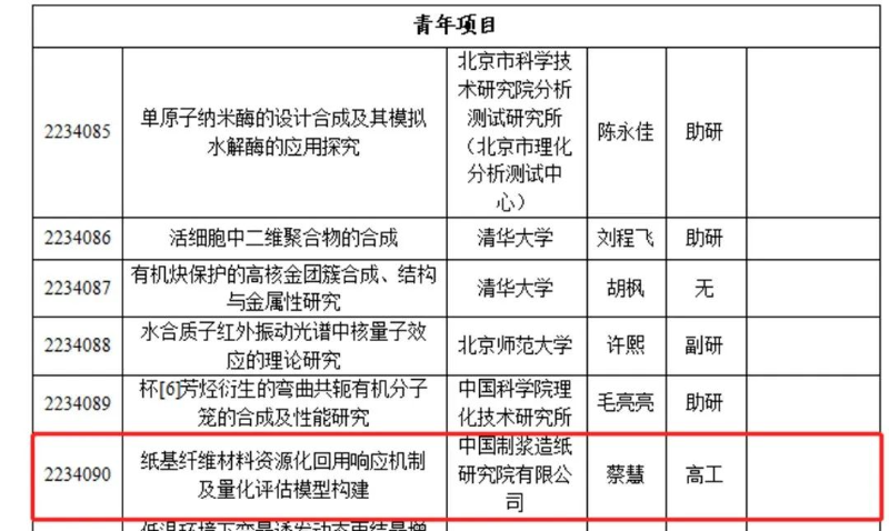 近日,北京市自然科學(xué)基金委員會正式公布了2023年度北京市自然科學(xué)基金面上及青年擬資助項目名單。中國造紙院標(biāo)準(zhǔn)化管理中心蔡慧博士申報的“紙基纖維材料資源化回用響應(yīng)機(jī)制及量化評估模型構(gòu)建”喜獲資助。