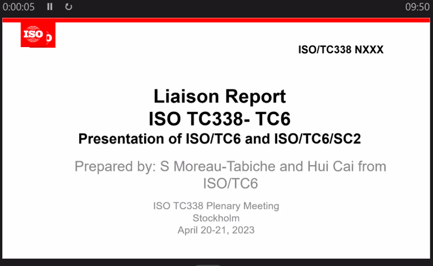 本次會(huì)議通過了全體會(huì)議議程,聽取了委員會(huì)經(jīng)理報(bào)告、ISO中央秘書處報(bào)告、工作組報(bào)告以及聯(lián)絡(luò)報(bào)告。專家代表對(duì)AHG 1、TG 1和WG 1工作組的在研項(xiàng)目進(jìn)展與工作組會(huì)議情況進(jìn)行了充分討論,最終形成了14項(xiàng)決議。標(biāo)準(zhǔn)化中心蔡慧博士作為ISO/TC 6和ISO/TC 6/SC 2的聯(lián)絡(luò)員,和法國專家S Moreau-Tabiche共同準(zhǔn)備了聯(lián)絡(luò)報(bào)告,進(jìn)行匯報(bào)。