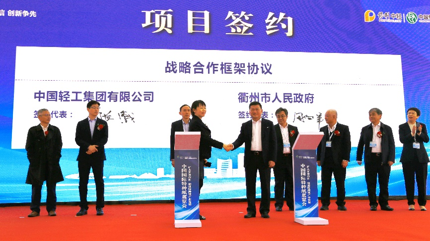 開幕式上,安勝杰作為致辭嘉賓發(fā)表講話,張曦與衢州市委常委、常務(wù)副市長周向軍簽署保利中輕-衢州市戰(zhàn)略合作協(xié)議,雙方將圍繞產(chǎn)業(yè)專項(xiàng)規(guī)劃、產(chǎn)業(yè)創(chuàng)新平臺、關(guān)鍵共性技術(shù)攻關(guān)、企業(yè)轉(zhuǎn)型升級等方面開展全方面合作。工業(yè)和信息化部消費(fèi)品工業(yè)司二級巡視員謝立安和安勝杰、曹春昱、孫波等保利中輕領(lǐng)導(dǎo)共同見證簽約儀式。