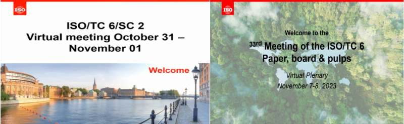 2023年10月31日—11月1日,11月7日—8日,國際標準化組織-紙、紙板和紙漿技術委員會ISO/TC6/SC2第37屆和ISO/TC6第33屆全體會議以線上形式召開。來自加拿大、瑞典、中國、美國、芬蘭、意大利、法國、德國、菲律賓、日本、印度、荷蘭、肯尼亞等13個國家的近60名代表參加了會議。