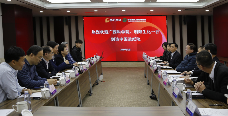 3月20日,非糧生物質(zhì)能技術(shù)全國(guó)重點(diǎn)實(shí)驗(yàn)室主任黃日波,廣西科學(xué)院副院長(zhǎng)、非糧生物質(zhì)能技術(shù)全國(guó)重點(diǎn)實(shí)驗(yàn)室常務(wù)副主任黃志民,廣西農(nóng)墾明陽(yáng)生化有限公司(以下簡(jiǎn)稱明陽(yáng)生化)董事長(zhǎng)陳明育、總經(jīng)理玉瓊廣一行到訪中國(guó)制漿造紙研究院(以下簡(jiǎn)稱中國(guó)造紙?jiān)海?/p>