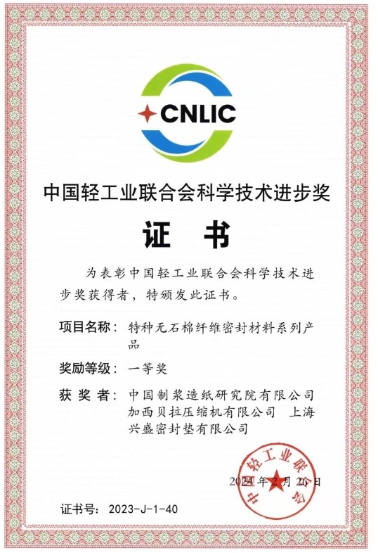 2024年4月,中國造紙?jiān)?ldquo;特種無石棉纖維密封材料系列產(chǎn)品”項(xiàng)目榮獲2023年度中國輕工業(yè)聯(lián)合會科技進(jìn)步一等獎。該項(xiàng)目屬于復(fù)合材料、橡膠化學(xué)和造紙技術(shù)的交叉學(xué)科領(lǐng)域,開發(fā)出機(jī)械裝置流體密封材料,是壓縮機(jī)、發(fā)動機(jī)和變速箱等機(jī)械制造行業(yè)的關(guān)鍵零部件材料,產(chǎn)品性能達(dá)到進(jìn)口同類產(chǎn)品水平,填補(bǔ)了國內(nèi)空白,為我國機(jī)械裝備密封領(lǐng)域打造了具備世界領(lǐng)先水平的基礎(chǔ)材料,保障了相關(guān)行業(yè)對基礎(chǔ)材料的需求。