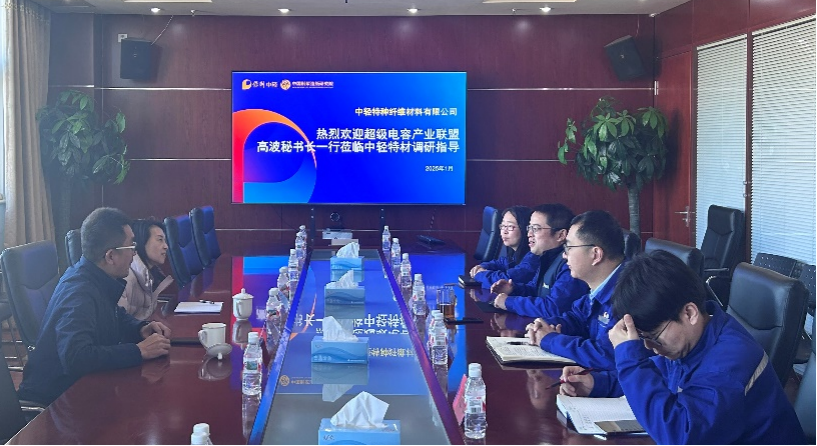 1月9日上午,中國(guó)電子工業(yè)標(biāo)準(zhǔn)化技術(shù)協(xié)會(huì)副秘書(shū)長(zhǎng)、超級(jí)電容產(chǎn)業(yè)聯(lián)盟(以下簡(jiǎn)稱(chēng)“超電聯(lián)盟”)秘書(shū)長(zhǎng)高波一行走訪(fǎng)超電聯(lián)盟副理事長(zhǎng)單位中輕特種纖維材料有限公司(以下簡(jiǎn)稱(chēng)“中輕特材”),開(kāi)展深入調(diào)研交流。