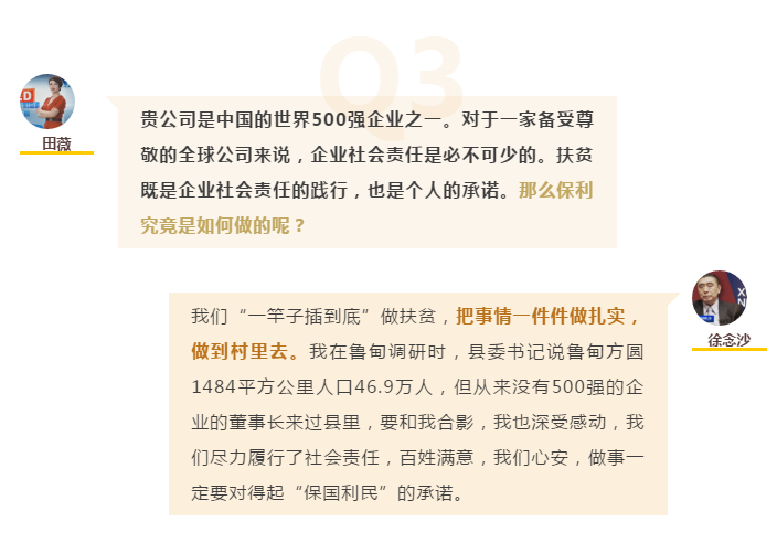 兩會(huì)期間,全國政協(xié)委員,中國保利集團(tuán)有限公司黨委書記、董事長(zhǎng)徐念沙接受中央廣播電視總臺(tái)CGTN World Insight節(jié)目專訪,講述保利脫貧攻堅(jiān)責(zé)任舉措。