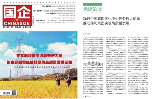 近日,《國(guó)企》雜志刊發(fā)保利集團(tuán)黨委副書(shū)記、總經(jīng)理張萬(wàn)順署名文章:《踐行中國(guó)式現(xiàn)代化中心任務(wù)偉大使命 推動(dòng)保利集團(tuán)實(shí)現(xiàn)高質(zhì)量發(fā)展》。文章深入闡述了中國(guó)式現(xiàn)代化的重大意義和科學(xué)內(nèi)涵,深刻揭示了保利集團(tuán)在科學(xué)、精益、高效中實(shí)現(xiàn)高質(zhì)量發(fā)展的思路舉措。與大家共享——