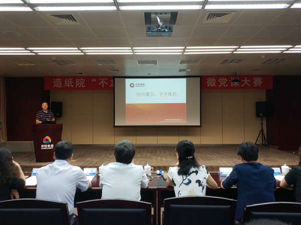 造紙?jiān)喝w黨員百余人參加了本次微黨課活動(dòng),中輕集團(tuán)黨辦主任寧?kù)o蒞臨指導(dǎo)。